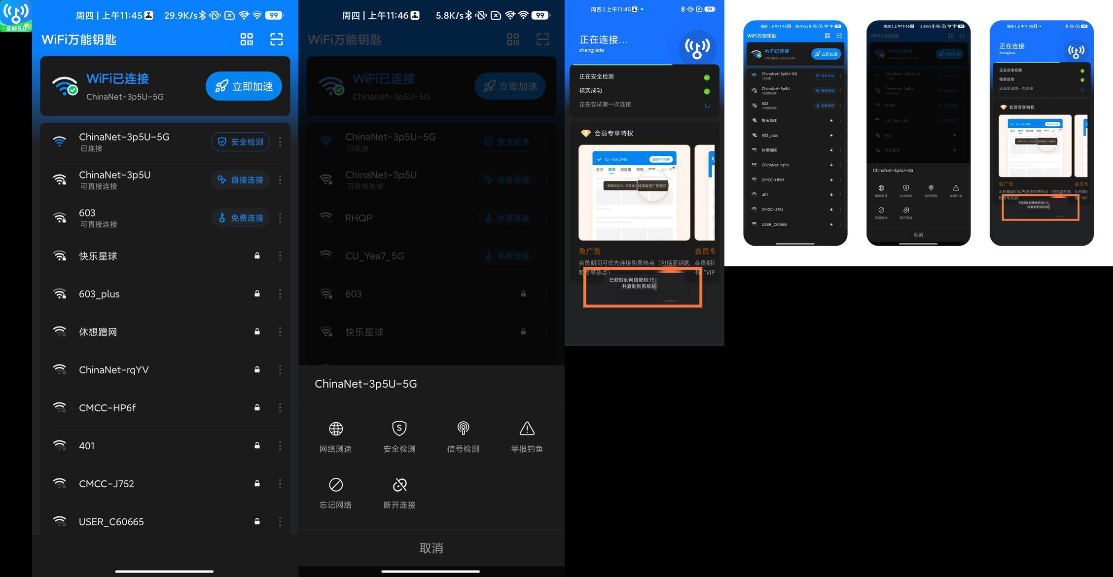 WiFi万能钥匙是一款帮助用户实现高效上网的应用程序。此版本特别强调了安全性、流畅性和经济性。它进一步增强了对钓鱼、ARP攻击、DNS篡改等网络攻击行为的实时监测,并提供数据加密分级传输和高达90%的恶意攻击拦截等安全防护措施。去除所有干扰广告,确保连接链路无干扰,给用户带来清爽的手机体验。热点推荐更加精准,优化了信号检测功能,强化了网络状态的实时提醒,让用户对自己的当前网络状况一目了然。
