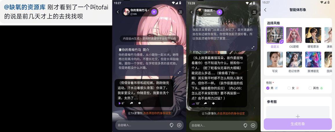 还能自己捏 AI 角色哦,选风格、定性别,上传参考图,再写点设定,独一无二的小伙伴就诞生啦~(感觉像以前的wow)