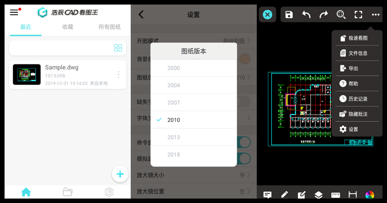 浩辰CAD看图王(原名:浩辰云图)是支持各版本DWG格式图纸在线打开的CAD软件,全面兼容AutoCAD、天正CAD等版本。同时提供网页、电脑、手机多端设备跨平台使用,轻松实现云端存储,一键互传,同步看图纸,分享协作。浩辰CAD看图王手机版,在手机或PAD上查看、编辑、批注CAD图纸文件。