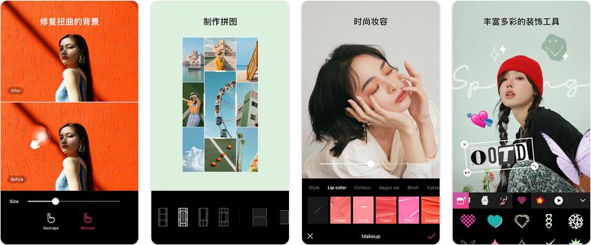 ・ 调色 :一键即可从美妆、美颜、面部美颜到滤镜完成完美造型