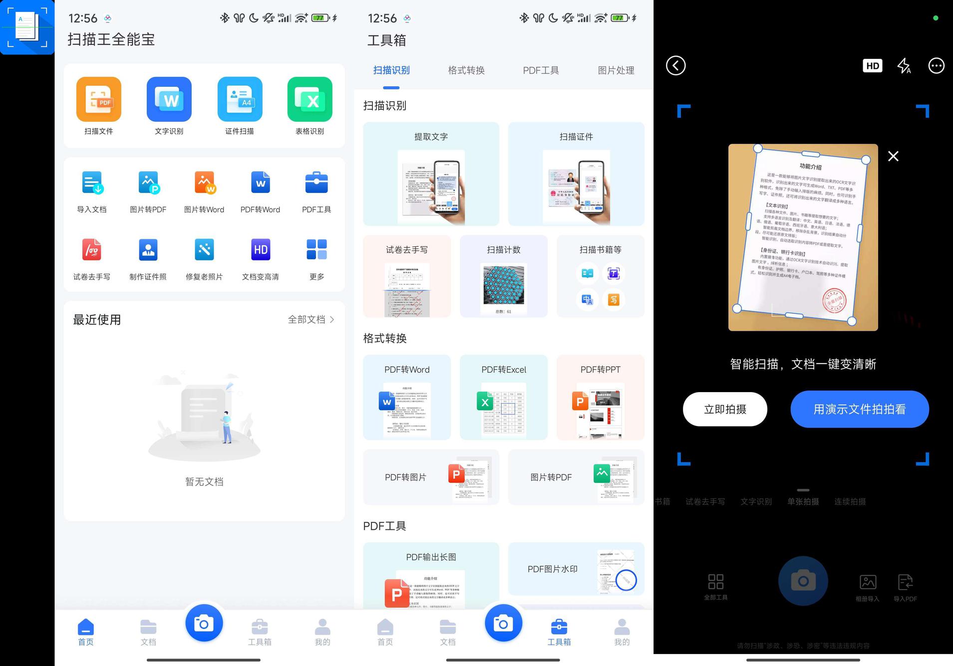 📣文字识别、手写识别、拍照翻译、文件扫描、证件扫描、表格识别、批量扫描识别、格式转换等功能,识别后的文字可以进行在线编辑调整、翻译,并且可以导出为word、txt、PDF、图片等多种格式,是您的移动多功能扫描仪。