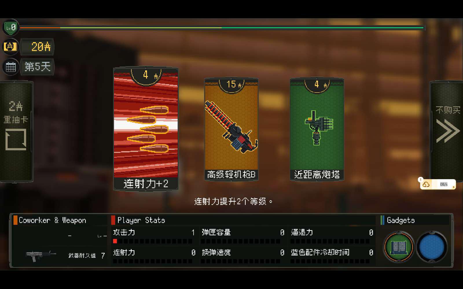本作品是一款简单易上手的快节奏射击游戏。 在游戏中,你将扮演私人军事公司的职工,通过卡片强化角色,并执行各式各样的防卫任务。