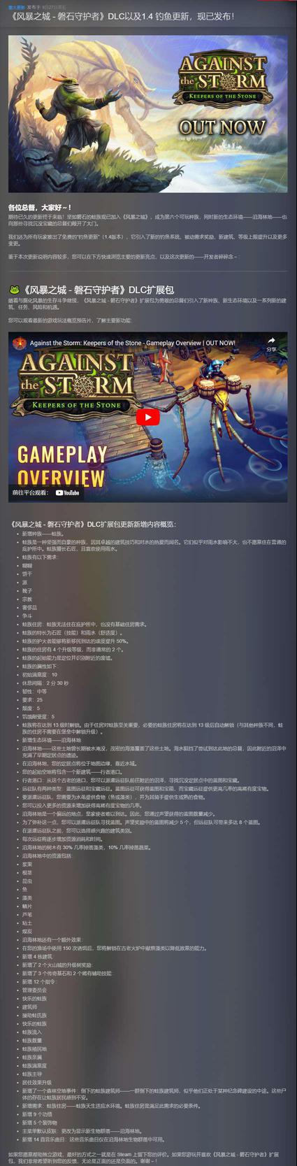 这是一款黑暗奇幻风格的城市建造模拟游戏,在游戏中,你将在席卷而来的灾变之中担起重建文明的使命。作为女王的总督,你将带领人类、海狸、狐狸、蜥蜴以及鸟身女怪们开拓荒野,为文明的遗民们构筑崭新的未来。
