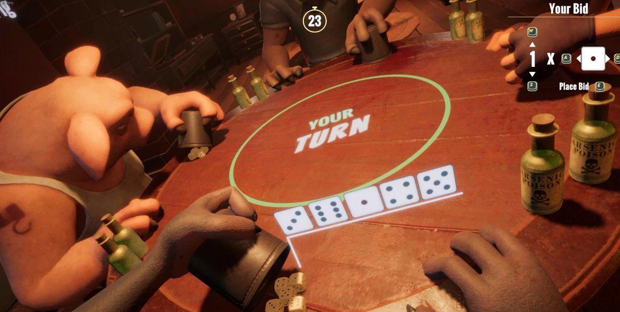 【游戏介绍】: 《骗子酒吧》沉浸在这个设定在阴暗酒吧的多人在线体验中,游戏的危险程度与酒客们一样。加入四人桌,测试你在《骗子骰子》和《骗子牌》中的技巧,在这些游戏中,撒谎和诈唬是胜利的关键。准备好在《骗子酒吧》度过一个夜晚了吗?
