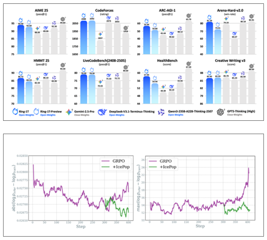 在Ring-1T模型中,蚂蚁采用了自研的“棒冰(icepop)”算法来应对这项行业难题,即用带掩码的双向截断技术把训练-推理分布差异冻结在低水位,确保长序列、长周期训练不崩。